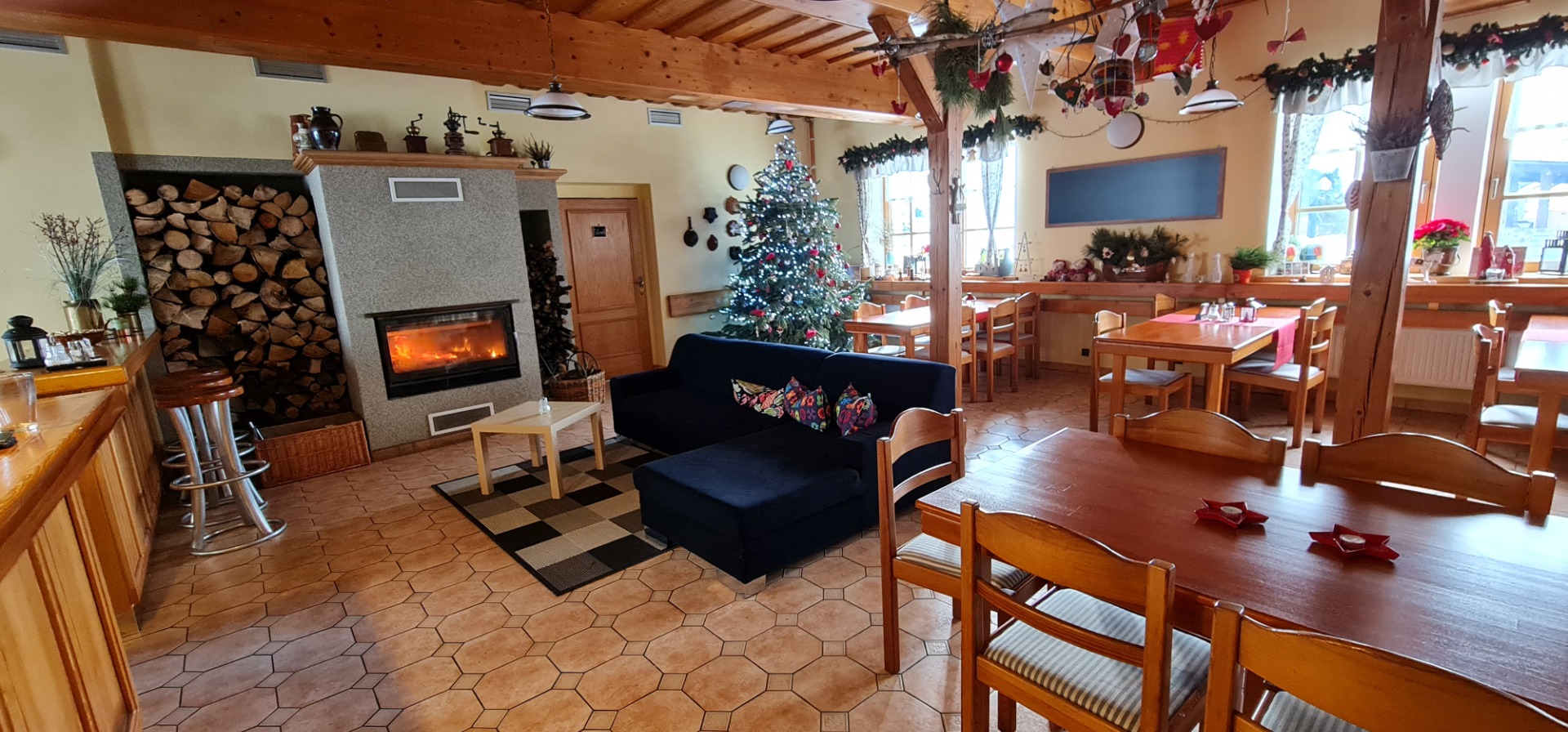 Součástí hotelu je restaurace (44 míst), salonek (5 míst), za hotelem je letní terasa jen pro ubytované a před hotelem zahrádka s dětským hřištěm, které je otevřena široké veřejnosti, přírodní ohniště, úschovna kol a lyží, venkovní parkoviště. K dispozici je hotelová restaurace s českou kuchyní, doplněnou výběrem vín, plzeňským pivem a širokou nabídkou nealkoholických nápojů. V zimních měsících restaurace potěší příjemným posezením u krbu.